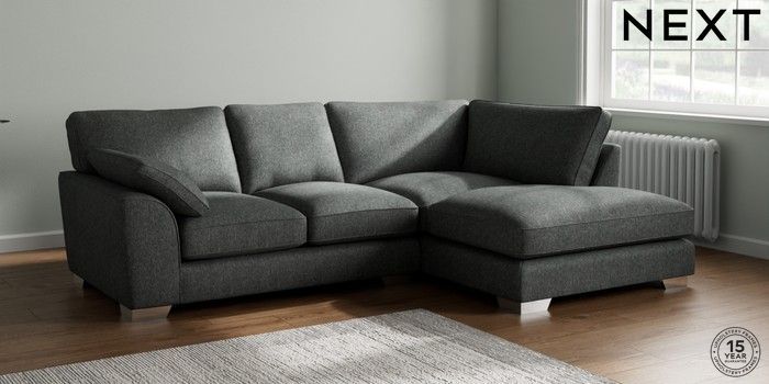7.3.1 Buy Stamford Grand Relaxed Sit Medium Corner Chaise - Right Hand Cotswold Chenille Dark Grey Large Square Angle - Chrome Metal from the Next UK online shop Click here to use our accessible website