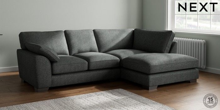 7.3.1 Buy Stamford Grand Relaxed Sit Medium Corner Chaise - Right Hand Cotswold Chenille Dark Grey Large Square Angle - Gunmetal from the Next UK online shop Click here to use our accessible website