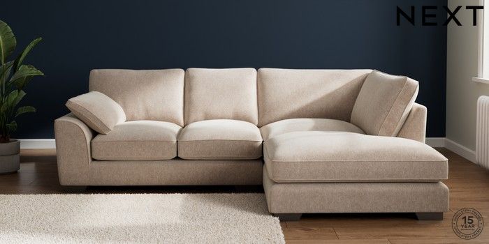 7.3.1 Buy Stamford Grand Relaxed Sit Medium Corner Chaise - Right Hand Cotswold Chenille Light Natural Large Square Angle - Gunmetal from the Next UK online shop Click here to use our accessible website