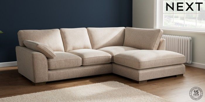 7.2.10 Buy Stamford Grand Relaxed Sit Medium Corner Chaise - Right Hand Cotswold Chenille Light Natural Large Square Angle - Mid from the Next UK online shop Click here to use our accessible website