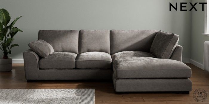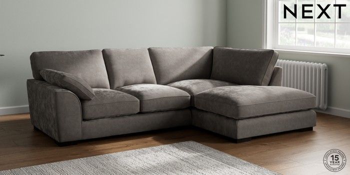 7.3.1 Buy Stamford Grand Relaxed Sit Medium Corner Chaise - Right Hand Distressed Velour French Grey Large Square Angle - Dark from the Next UK online shop Click here to use our accessible website