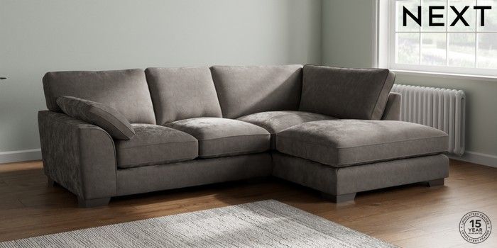7.3.1 Buy Stamford Grand Relaxed Sit Medium Corner Chaise - Right Hand Distressed Velour French Grey Large Square Angle - Gunmetal from the Next UK online shop Click here to use our accessible website