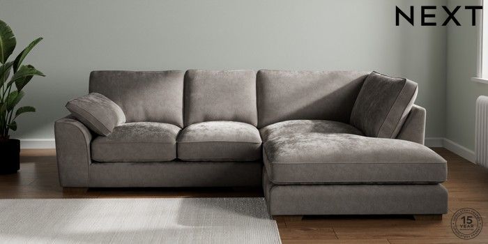 7.3.1 Buy Stamford Grand Relaxed Sit Medium Corner Chaise - Right Hand Distressed Velour French Grey Large Square Angle - Mid from the Next UK online shop Click here to use our accessible website