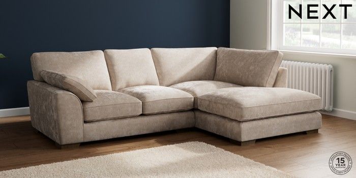 7.2.10 Buy Stamford Grand Relaxed Sit Medium Corner Chaise - Right Hand Distressed Velour Mid Natural Large Square Angle - Mid from the Next UK online shop Click here to use our accessible website