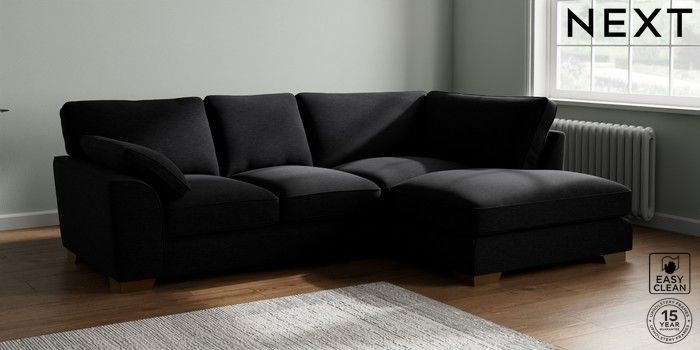 7.2.10 Buy Stamford Grand Relaxed Sit Medium Corner Chaise - Right Hand Fine Chenille Easy Clean Black Large Square Angle - Brushed Brass from the Next UK online shop Click here to use our accessible website