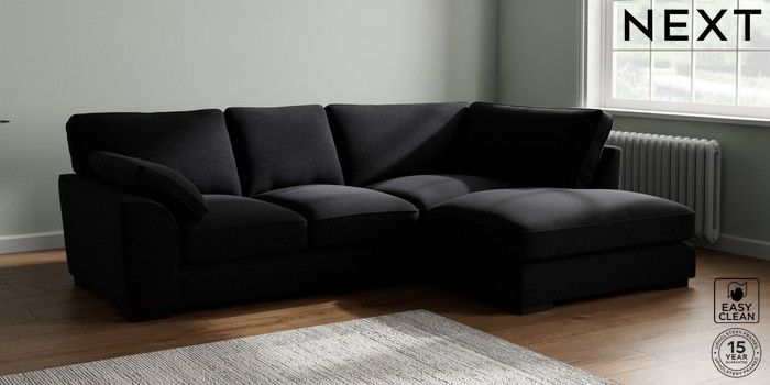 7.2.10 Buy Stamford Grand Relaxed Sit Medium Corner Chaise - Right Hand Fine Chenille Easy Clean Black Large Square Angle - Dark from the Next UK online shop Click here to use our accessible website