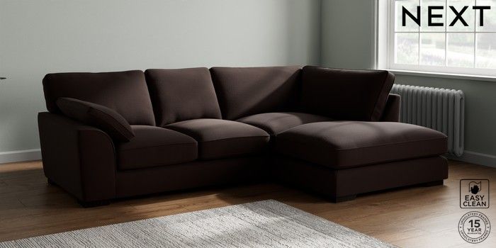 7.3.1 Buy Stamford Grand Relaxed Sit Medium Corner Chaise - Right Hand Fine Chenille Easy Clean Chocolate Brown Large Square Angle - Dark from the Next UK online shop Click here to use our accessible website