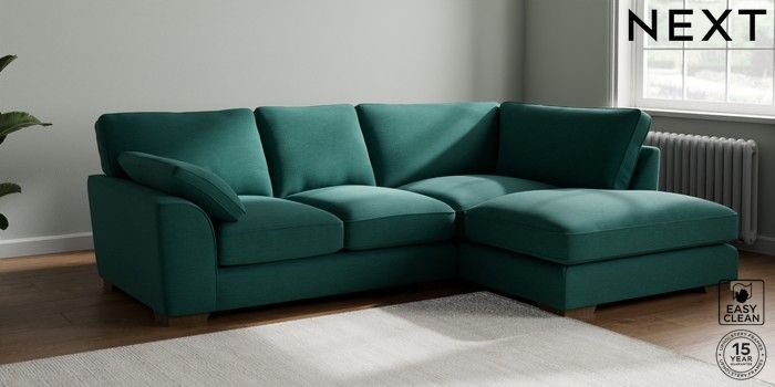 7.2.10 Buy Stamford Grand Relaxed Sit Medium Corner Chaise - Right Hand Fine Chenille Easy Clean Dark Juniper Green Large Square Angle - Mid from the Next UK online shop Click here to use our accessible website
