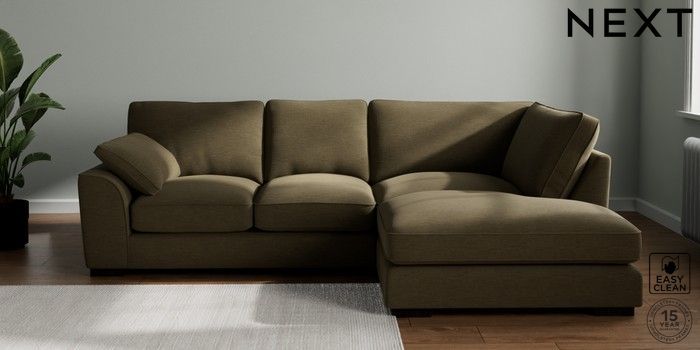 7.3.1 Buy Stamford Grand Relaxed Sit Medium Corner Chaise - Right Hand Fine Chenille Easy Clean Dark Moss Green Large Square Angle - Dark from the Next UK online shop Click here to use our accessible website