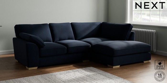 7.2.10 Buy Stamford Grand Relaxed Sit Medium Corner Chaise - Right Hand Fine Chenille Easy Clean Dark Navy Blue Large Square Angle - Light from the Next UK online shop Click here to use our accessible website