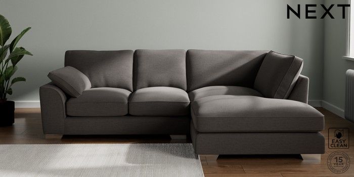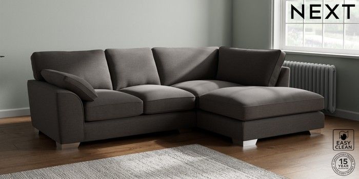 7.3.1 Buy Stamford Grand Relaxed Sit Medium Corner Chaise - Right Hand Fine Chenille Easy Clean Dark Smoke Grey Large Square Angle - Chrome Metal from the Next UK online shop Click here to use our accessible website