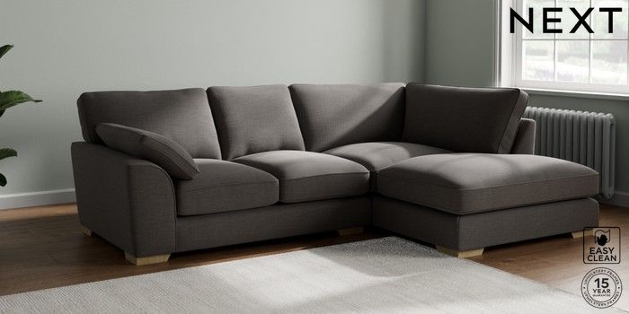 7.2.10 Buy Stamford Grand Relaxed Sit Medium Corner Chaise - Right Hand Fine Chenille Easy Clean Dark Smoke Grey Large Square Angle - Light from the Next UK online shop Click here to use our accessible website