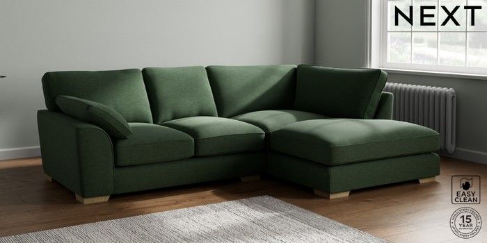 7.3.1 Buy Stamford Grand Relaxed Sit Medium Corner Chaise - Right Hand Fine Chenille Easy Clean Mid Khaki Green Large Square Angle - Light from the Next UK online shop Click here to use our accessible website