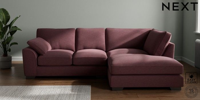 7.3.1 Buy Stamford Grand Relaxed Sit Medium Corner Chaise - Right Hand Fine Chenille Easy Clean Mid Mulberry Purple Large Square Angle - Gunmetal from the Next UK online shop Click here to use our accessible website