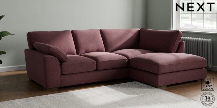 7.3.1 Buy Stamford Grand Relaxed Sit Medium Corner Chaise - Right Hand Fine Chenille Easy Clean Mid Mulberry Purple Large Square Angle - Mid from the Next UK online shop Click here to use our accessible website