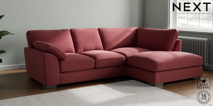 7.3.1 Buy Stamford Grand Relaxed Sit Medium Corner Chaise - Right Hand Fine Chenille Easy Clean Mid Pink Large Square Angle - Gunmetal from the Next UK online shop Click here to use our accessible website
