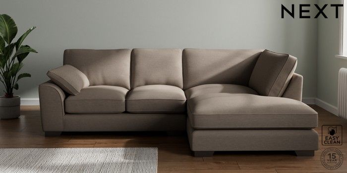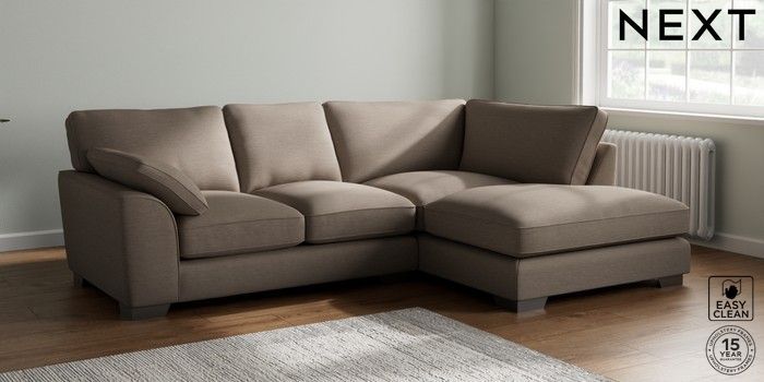 7.3.1 Buy Stamford Grand Relaxed Sit Medium Corner Chaise - Right Hand Fine Chenille Easy Clean Mid Taupe Brown Large Square Angle - Gunmetal from the Next UK online shop Click here to use our accessible website