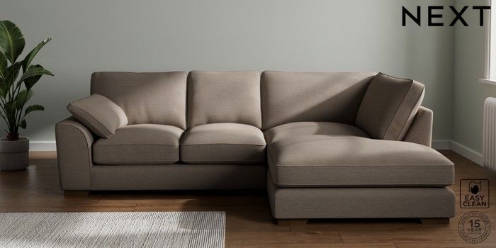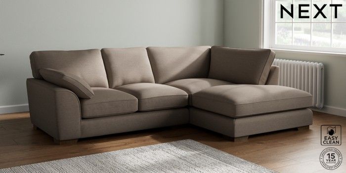 7.3.1 Buy Stamford Grand Relaxed Sit Medium Corner Chaise - Right Hand Fine Chenille Easy Clean Mid Taupe Brown Large Square Angle - Mid from the Next UK online shop Click here to use our accessible website