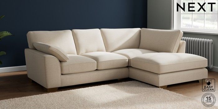 7.3.1 Buy Stamford Grand Relaxed Sit Medium Corner Chaise - Right Hand Fine Chenille Easy Clean Oyster Large Square Angle - Brushed Brass from the Next UK online shop Click here to use our accessible website