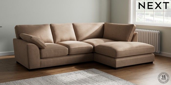 7.2.10 Buy Stamford Grand Relaxed Sit Medium Corner Chaise - Right Hand Luxe Chenille Mid Natural Large Square Angle - Dark from the Next UK online shop Click here to use our accessible website