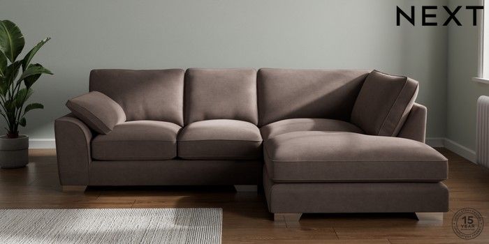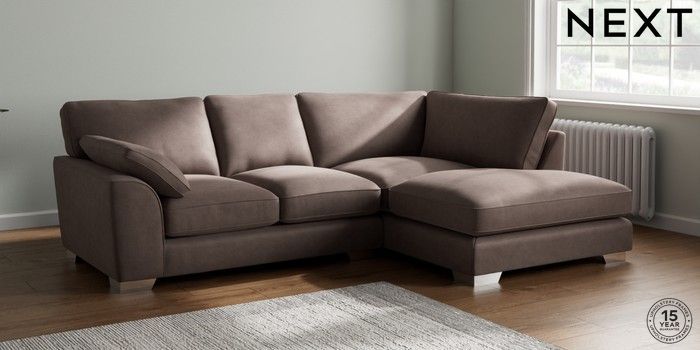 7.3.1 Buy Stamford Grand Relaxed Sit Medium Corner Chaise - Right Hand Luxe Chenille Mink Brown Large Square Angle - Chrome Metal from the Next UK online shop Click here to use our accessible website