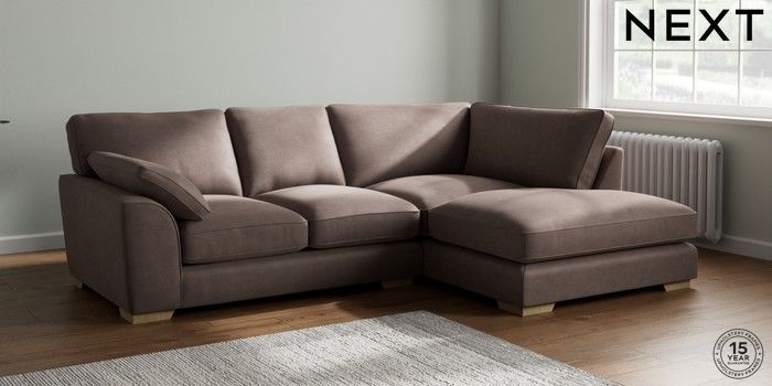 7.2.10 Buy Stamford Grand Relaxed Sit Medium Corner Chaise - Right Hand Luxe Chenille Mink Brown Large Square Angle - Light from the Next UK online shop Click here to use our accessible website