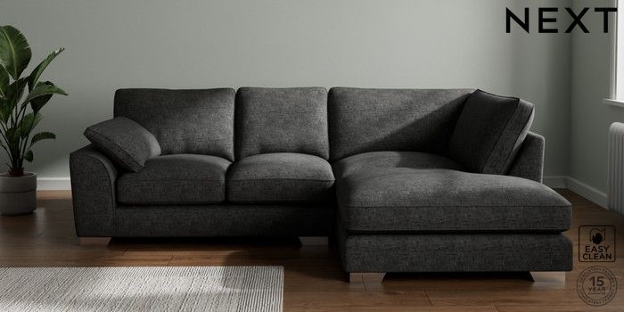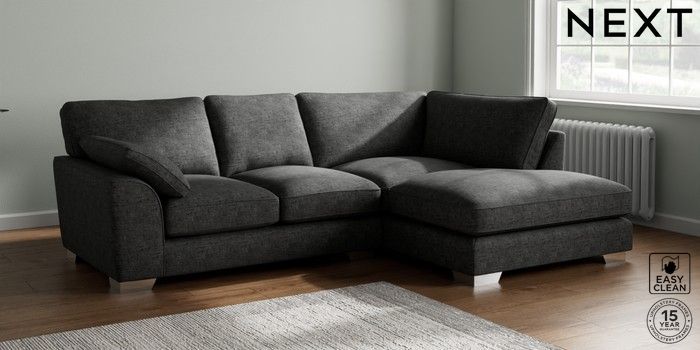 7.3.1 Buy Stamford Grand Relaxed Sit Medium Corner Chaise - Right Hand Boucle Weave Easy Clean Charcoal Grey Large Square Angle - Chrome Metal from the Next UK online shop Click here to use our accessible website