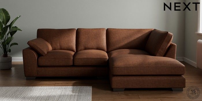 7.3.1 Buy Stamford Grand Relaxed Sit Medium Corner Chaise - Right Hand Monza Faux Leather Easy Clean Chestnut Brown Large Square Angle - Gunmetal from the Next UK online shop