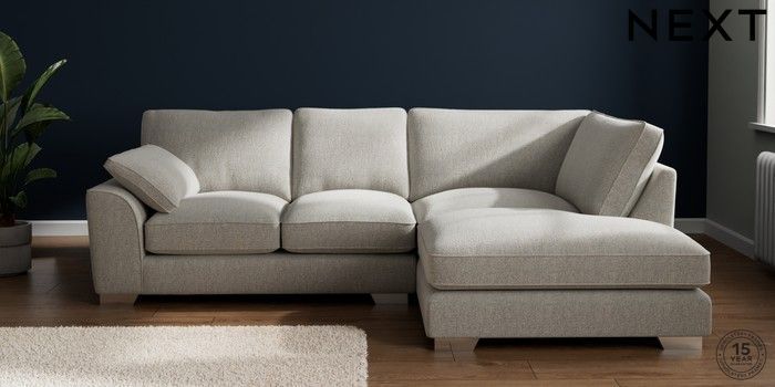 7.3.1 Buy Stamford Grand Relaxed Sit Medium Corner Chaise - Right Hand Multi Weave Light Blue Large Square Angle - Chrome Metal from the Next UK online shop