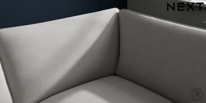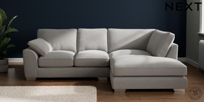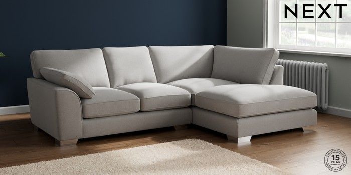 7.3.1 Buy Stamford Grand Relaxed Sit Medium Corner Chaise - Right Hand Natural Mix Light Grey Large Square Angle - Chrome Metal from the Next UK online shop Click here to use our accessible website