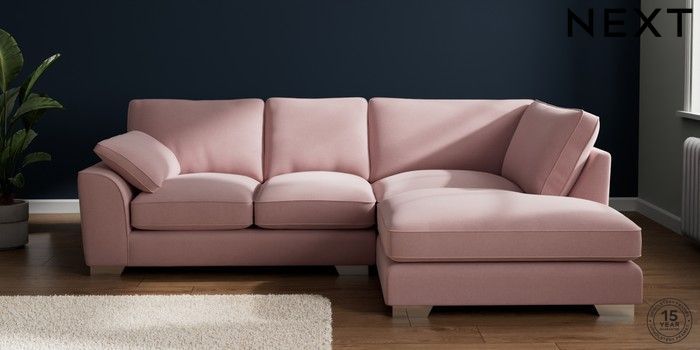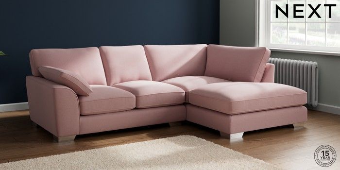 7.3.1 Buy Stamford Grand Relaxed Sit Medium Corner Chaise - Right Hand Natural Mix Light Rose Pink Large Square Angle - Chrome Metal from the Next UK online shop Click here to use our accessible website