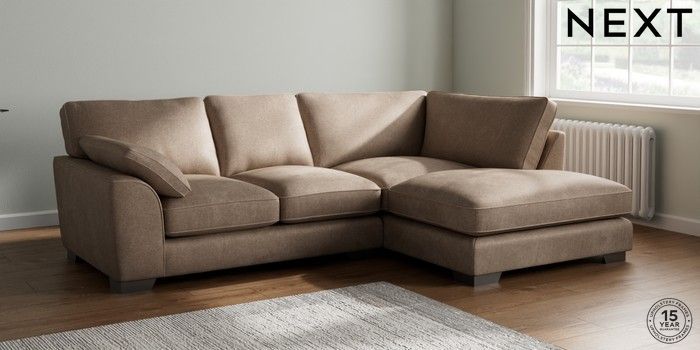 7.3.1 Buy Stamford Grand Relaxed Sit Medium Corner Chaise - Right Hand Plush Chenille Mid Natural Large Square Angle - Gunmetal from the Next UK online shop Click here to use our accessible website