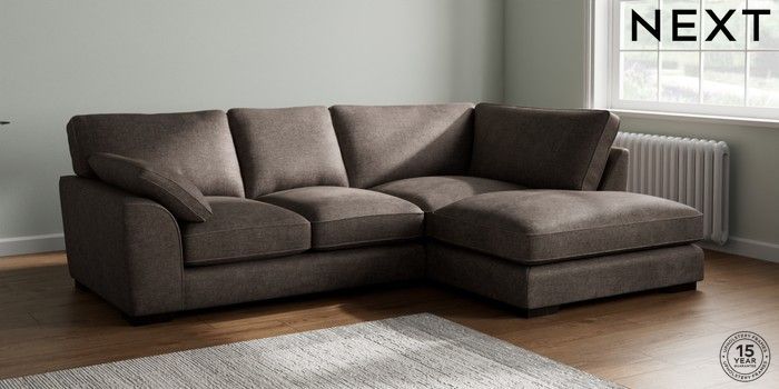 7.2.10 Buy Stamford Grand Relaxed Sit Medium Corner Chaise - Right Hand Plush Chenille Mink Brown Large Square Angle - Dark from the Next UK online shop Click here to use our accessible website