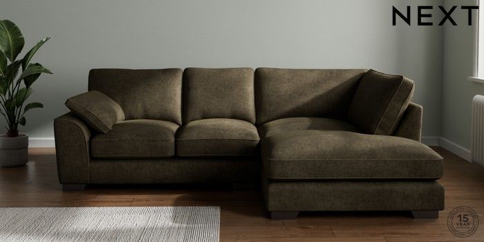 7.3.1 Buy Stamford Grand Relaxed Sit Medium Corner Chaise - Right Hand Plush Chenille Moss Green Large Square Angle - Gunmetal from the Next UK online shop Click here to use our accessible website