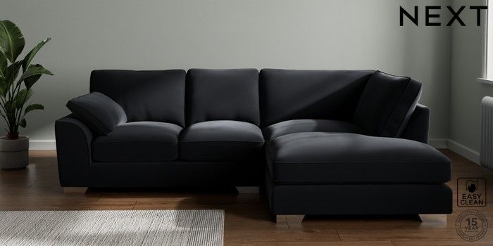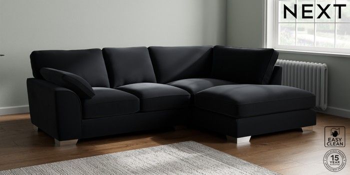 7.3.1 Buy Stamford Grand Relaxed Sit Medium Corner Chaise - Right Hand Plush Velvet Easy Clean Charcoal Grey Large Square Angle - Chrome Metal from the Next UK online shop Click here to use our accessible website