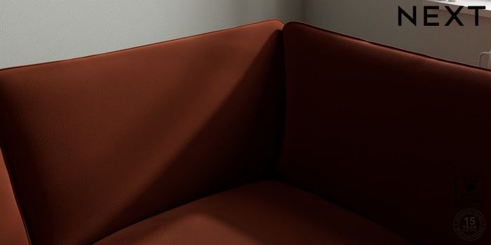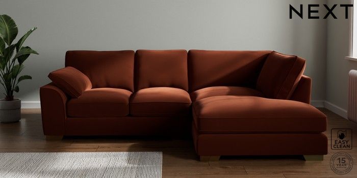 7.3.1 Buy Stamford Grand Relaxed Sit Medium Corner Chaise - Right Hand Plush Velvet Easy Clean Ginger Orange Large Square Angle - Brushed Brass from the Next UK online shop Click here to use our accessible website
