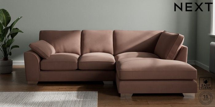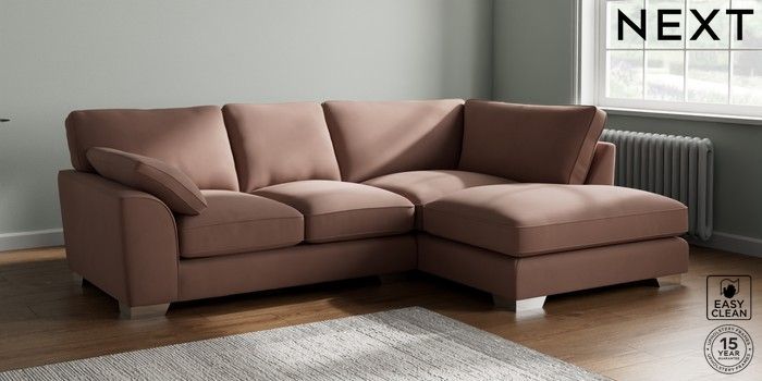 7.3.1 Buy Stamford Grand Relaxed Sit Medium Corner Chaise - Right Hand Plush Velvet Easy Clean Mid Natural Large Square Angle - Chrome Metal from the Next UK online shop Click here to use our accessible website