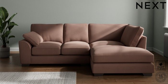 7.3.1 Buy Stamford Grand Relaxed Sit Medium Corner Chaise - Right Hand Plush Velvet Easy Clean Mid Natural Large Square Angle - Gunmetal from the Next UK online shop Click here to use our accessible website