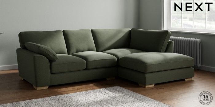7.3.1 Buy Stamford Grand Relaxed Sit Medium Corner Chaise - Right Hand Relaxed Linen Look Dark Green Large Square Angle - Light from the Next UK online shop Click here to use our accessible website