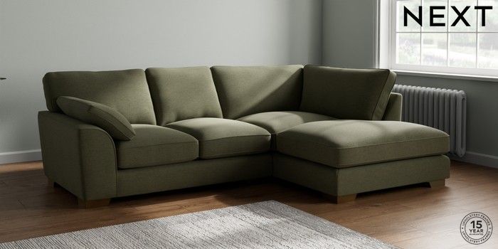 7.3.1 Buy Stamford Grand Relaxed Sit Medium Corner Chaise - Right Hand Ripple Chenille Mid Moss Green Large Square Angle - Brushed Brass from the Next UK online shop Click here to use our accessible website