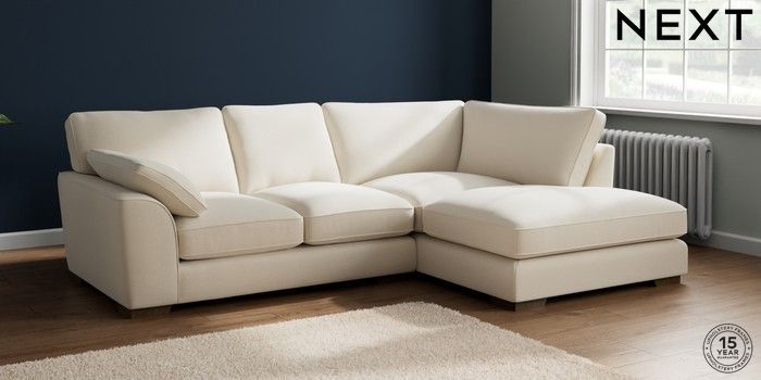 7.2.10 Buy Stamford Grand Relaxed Sit Medium Corner Chaise - Right Hand Ripple Chenille Oyster Large Square Angle - Mid from the Next UK online shop Click here to use our accessible website