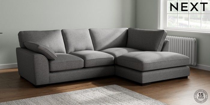 7.2.10 Buy Stamford Grand Relaxed Sit Medium Corner Chaise - Right Hand Studio Chenille Mid Grey Large Square Angle - Dark from the Next UK online shop Click here to use our accessible website