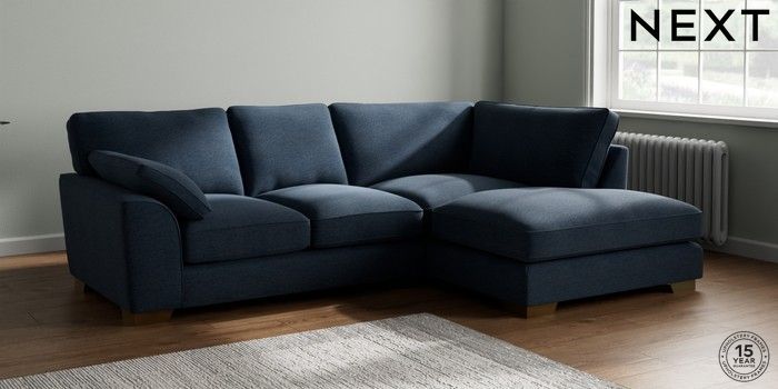 7.2.10 Buy Stamford Grand Relaxed Sit Medium Corner Chaise - Right Hand Ripple Chenille Dark Blue Large Square Angle - Brushed Brass from the Next UK online shop Click here to use our accessible website