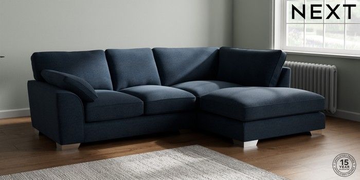 7.2.10 Buy Stamford Grand Relaxed Sit Medium Corner Chaise - Right Hand Ripple Chenille Dark Blue Large Square Angle - Chrome Metal from the Next UK online shop Click here to use our accessible website