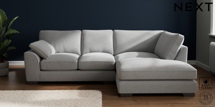 7.3.1 Buy Stamford Grand Relaxed Sit Medium Corner Chaise - Right Hand Tweedy Blend Easy Clean Light Silver Grey Large Square Angle - Gunmetal from the Next UK online shop Click here to use our accessible website