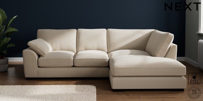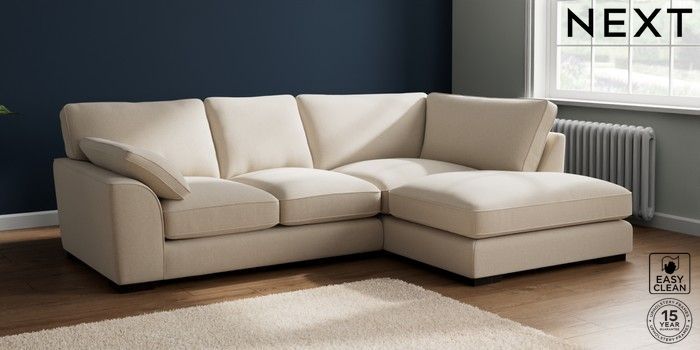 7.3.1 Buy Stamford Grand Relaxed Sit Medium Corner Chaise - Right Hand Tweedy Blend Easy Clean Oyster Large Square Angle - Dark from the Next UK online shop Click here to use our accessible website