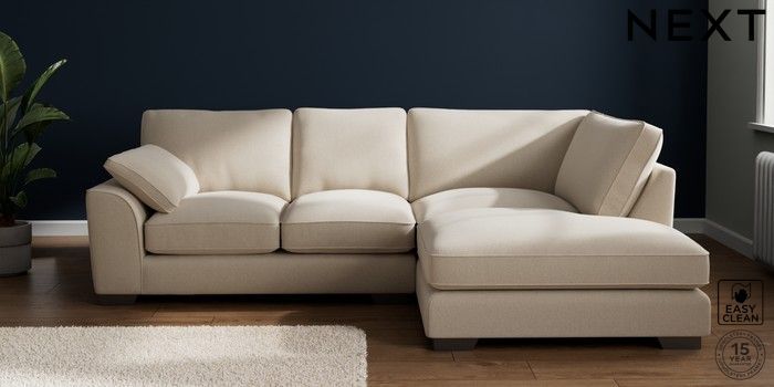 7.3.1 Buy Stamford Grand Relaxed Sit Medium Corner Chaise - Right Hand Tweedy Blend Easy Clean Oyster Large Square Angle - Gunmetal from the Next UK online shop Click here to use our accessible website