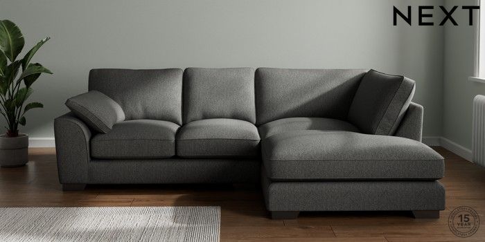 7.3.1 Buy Stamford Grand Relaxed Sit Medium Corner Chaise - Right Hand Tweedy Chenille Dark Grey Large Square Angle - Gunmetal from the Next UK online shop Click here to use our accessible website