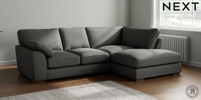 7.2.10 Buy Stamford Grand Relaxed Sit Medium Corner Chaise - Right Hand Tweedy Chenille Dark Grey Large Square Angle - Mid from the Next UK online shop Click here to use our accessible website