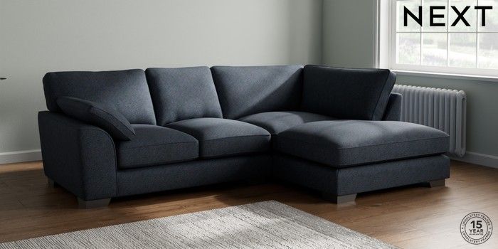 7.3.1 Buy Stamford Grand Relaxed Sit Medium Corner Chaise - Right Hand Tweedy Chenille Navy Blue Large Square Angle - Gunmetal from the Next UK online shop Click here to use our accessible website